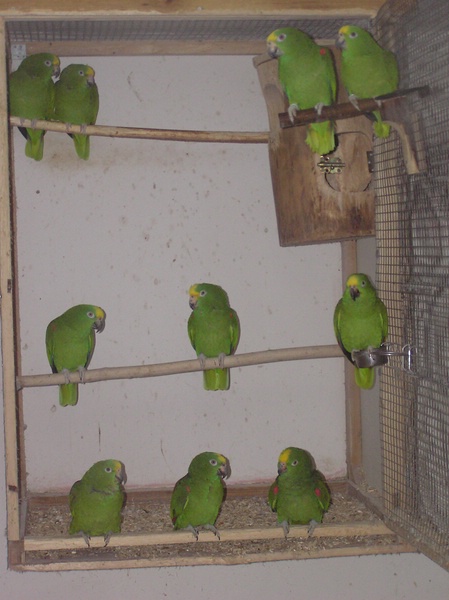 Ich bin der Überzeugung, dass Gruppenhaltung bei allen Papageienvögeln erfolgreich praktiziert werden kann, die sich in freier Natur (in der Regel außerhalb der Brutzeit) zu mehr oder weniger großen Gruppen zusammenfinden. Bei den Ochrocephala-Arten trifft diese Voraussetzung ganz eindeutig zu. Da bei der Haltung in Menschenobhut keine großen Reviere zur Verfügung stehen, muß dies natürlich bei der Gestaltung des künstlichen Lebensraums berücksichtigt werden. Dass Gruppenhaltung auf relativ begrenztem Raum überhaupt möglich ist, dürfte darauf zurückzuführen sein, dass in der Regel kein Tier ein größeres Revier beansprucht, als zum Überleben notwendig ist. Wenn also ein Revier von wenigen Quadratmetern ausreichend Nahrung, Bewegungsfreiheit, Flugmöglichkeit, Abwechslung und einen sicheren Platz zum Brüten bietet, so kommt ein Vogel mit diesen Bedingungen sicher ohne Probleme zurecht.