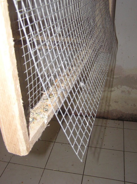 Das Gitter festzutackern habe ich aus 3 Gründen wieder aufgegeben: 1. ist ein Papageienschnabel das ideale Werkzeug um die Klammern wieder herauszuziehen und natürlich machen die Vögel dies auch; 2. ist bei Holzbauweise öfter mal eine Reparatur erforderlich und dann ist es natürlich wesentlich einfacher wenn das Drahtgitter einfach abgeschraubt werden kann; 3. verwende ich in der Gruppenhaltung ausschließlich doppelt vergitterte Volierenelemente. Ohne das Gitter ganz oder teilweise abzuschrauben ist hier eine Reinigung nahezu unmöglich, zumindest aber sehr zeitaufwendig.
